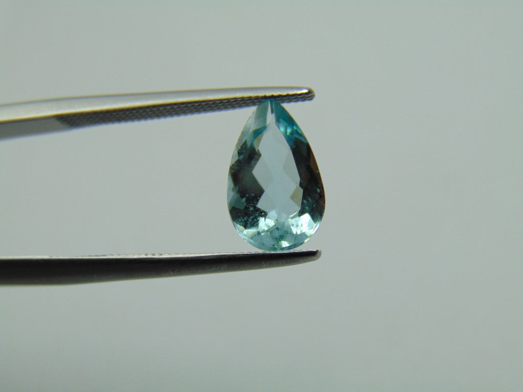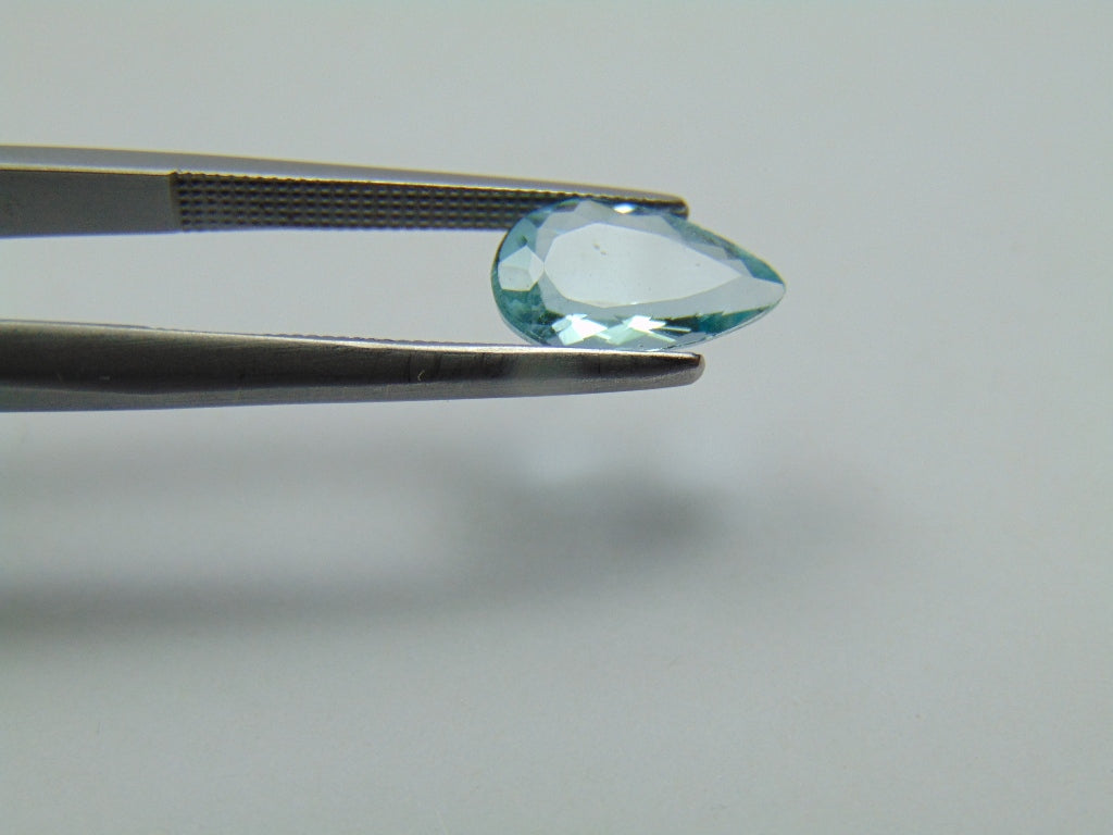 This Aquamarine gemstone, sourced from Brazil, weighs approximately 1.35 carats and features a drop cut. This gemstone is available for purchase and can be shipped to many parts of the world.