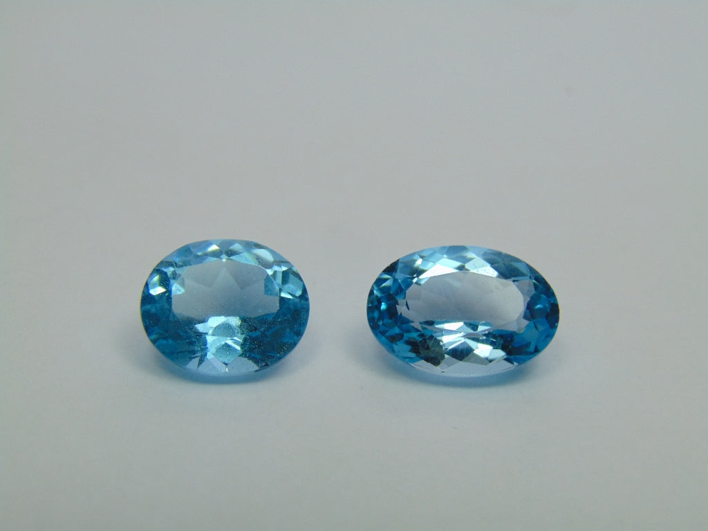 These two Topaz gemstones, sourced from Brazil, have a combined weight of approximately 12.80 carats and feature oval cuts. These Topaz gemstones are available for purchase and can be shipped to many parts of the world.