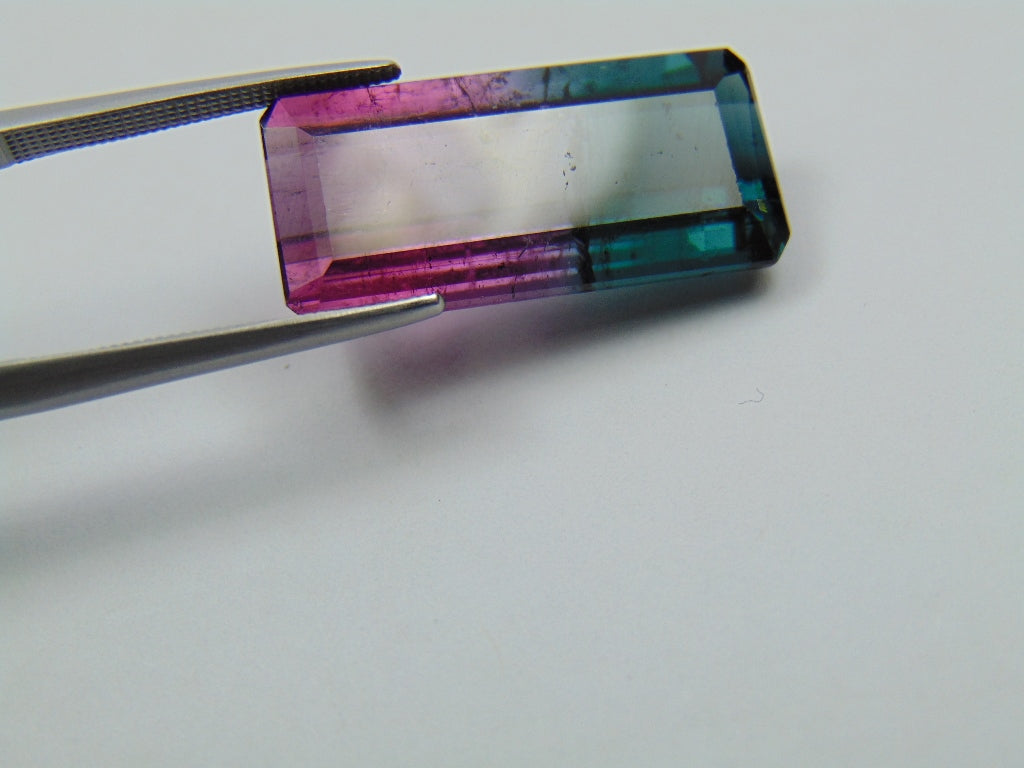This bicolor Tourmaline originates from Brazil and its weight is about 16.10 carats. The shape/cut-style of this bicolor Tourmaline is Retangular/Baguette. This bicolor Tourmaline is available to order and can be shipped anywhere in the world.