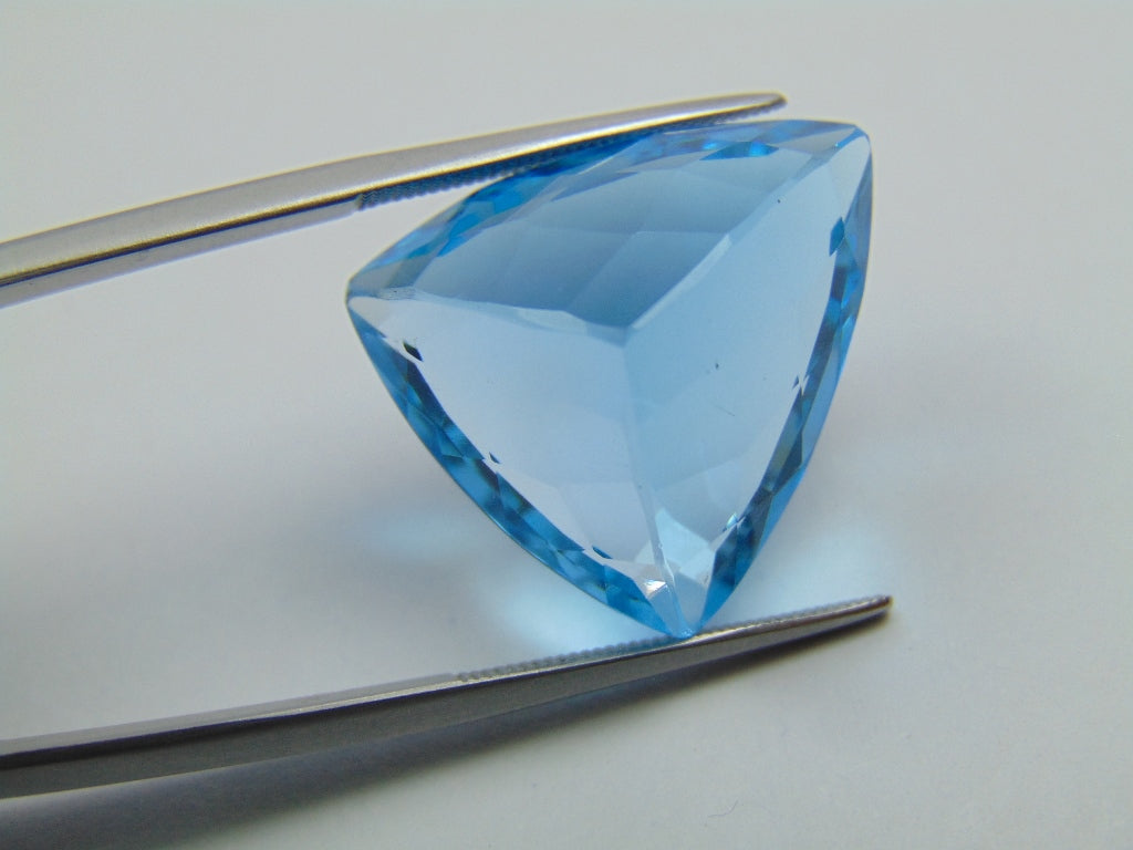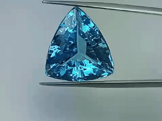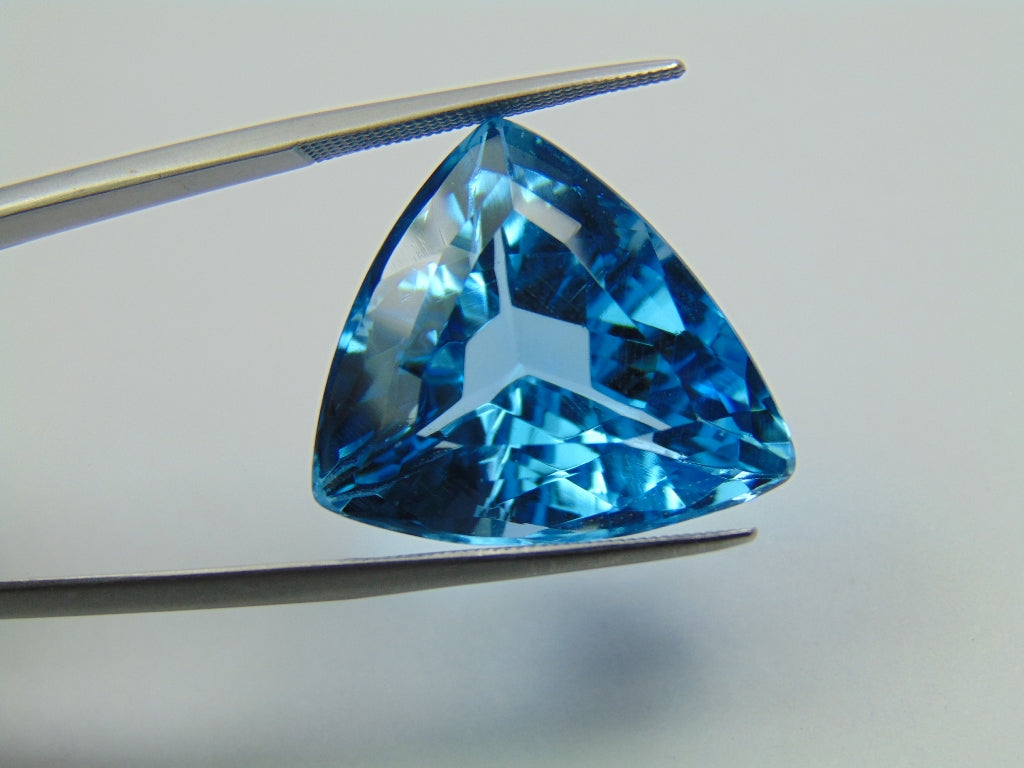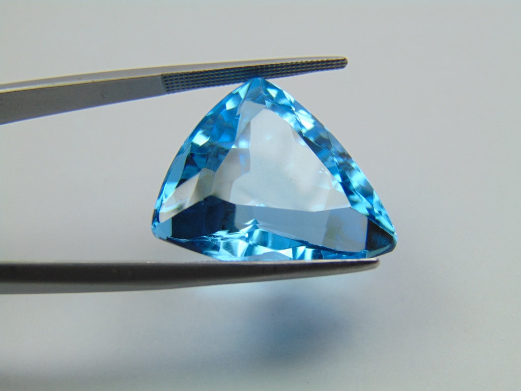 This Blue Swiss Topaz originates from Brazil and weighs approximately 32.90 carats. The shape/cut style of this Topaz is trillion. This Blue Swiss Topaz is available for purchase and can be shipped to many parts of the world.