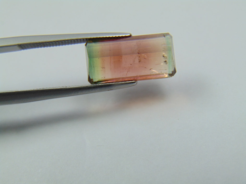 This bicolor Tourmaline originates from Brazil and its weight is about 4.50 carats. The shape/cut-style of this bicolor Tourmaline is Retangular/Baguette. This bicolor Tourmaline is available to order and can be shipped anywhere in the world.