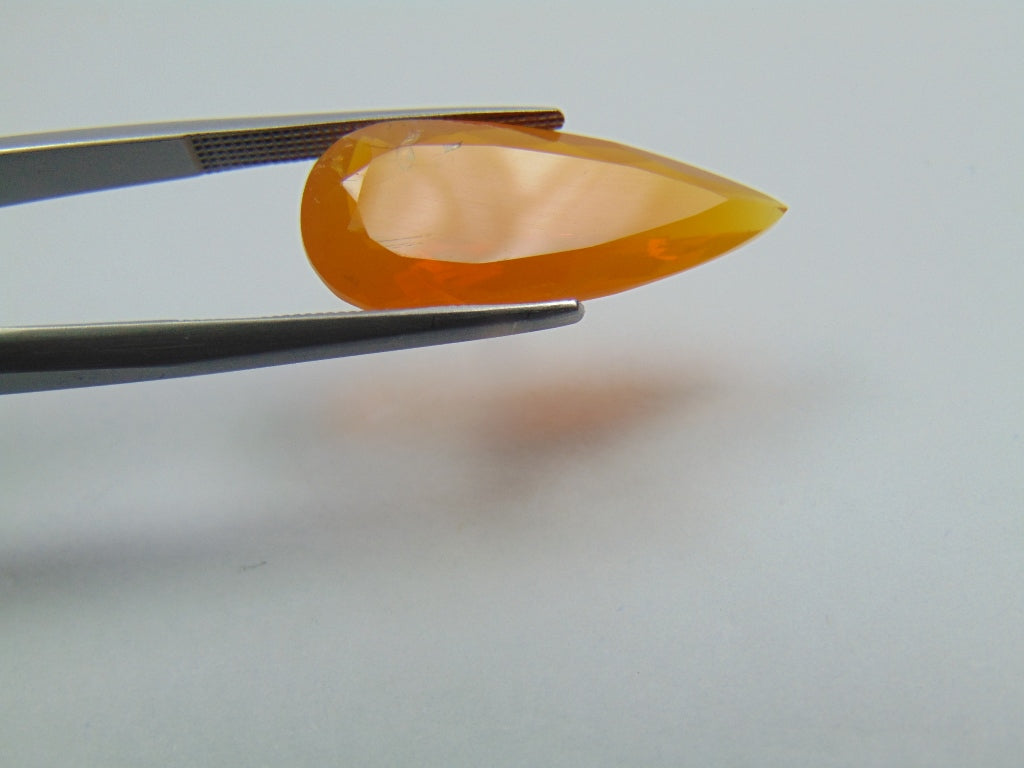 This Fire Opal gemstone, sourced from Brazil, weighs approximately 6.50 carats and features a drop cut. This gemstone is available for purchase and can be shipped to many parts of the world.